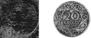 Высота рельефа для подлинных монет образца 1932 г. (рис.9) следующая: двузлотовой - 0,1 мм по гербовой стороне, 0,15 мм по лицевой стороне (диаметр 22,0 мм, толщина 1,2 мм), пятизлотовой - 0,15 мм по гербовой стороне, 0,2 мм по лицевой стороне (диаметр 28,0 мм, толщина 2,0 мм), десятизлотовой - 0,3 мм по гербовой стороне, 0,2 мм по лицевой стороне (диаметр 34,0 мм, толщина 2,5 мм). Как видно из приведенных характеристик, десятизлотовая монета имела наибольшую высоту рельефа, который на гербовой стороне в три раза превосходил аналогичный показатель двузлото-вика.