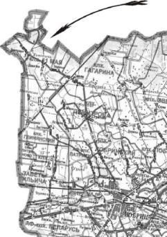 Рис.5. Фрагмент современной карты Кобринского р-на с д.Киватичи (в северо-западном углу, указано стрелкой)