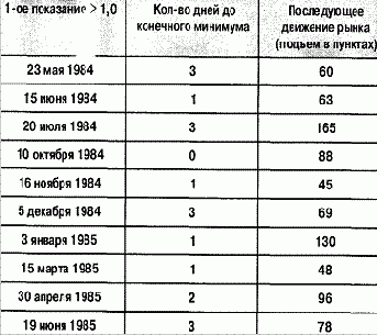 · В обычных рыночных условиях STIX редко поднимается до 56 или опус кается до 45, поэтому при строгом соблюдении этих правил можно большую часть времени находиться вне рынка. Для тех, кто предпочитает активную торговлю, указанные правила можно смягчить (см. табл)