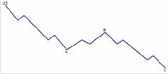 Зигзаг - это 3-волновая структура, помеченная буквами A-B-C, в целом движущаяся против основной тенденции. Это один из самых распространенных паттернов Эллиотта.