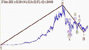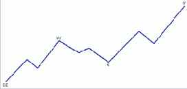 Теперь, когда мы знаем, что вершина 2000 была окончанием Импульса, мы также знаем, что с этого времени начался откат - Волна 2 Импульса большей степени. Если Вы проверите правила для Импульса, то увидите, что Волной 2 может быть любая корректирующая волна, кроме Треугольника.