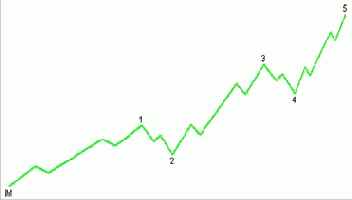 Импульсная волна составлена из пяти подволн и движется в том же направлении, что и тренд следующего большего размера.