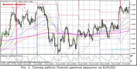Рис. 4. Пример работы Ложной двойной вершины на EURUSD.