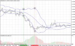 Рис. 1. Индикатор Bollinger Bands (на графике цены) и BoDi (внизу).