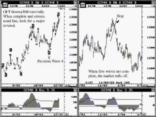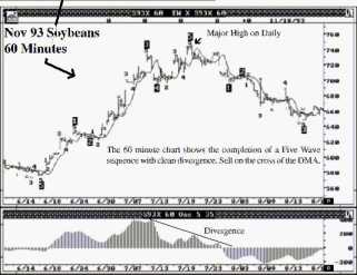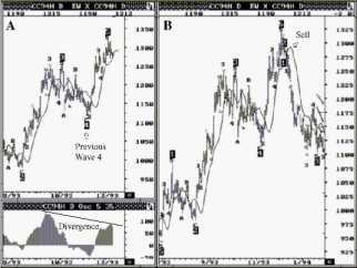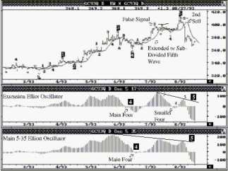 - Когда Пятая Волна устанавливает новые максимальные цены, удостоверьтесь, что Осциллятор Эллиота изображает дивергенцию с пиком Третьей Волны.