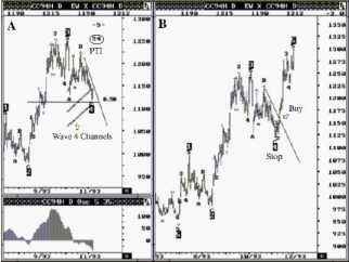 К тому же, цены должны удерживаться над Каналами Четвёртой Волны, которые указывают на идеальное количество времени для обыкновенного снятия прибыли. На графике А цены держатся над Каналами Четвёртой Волны.