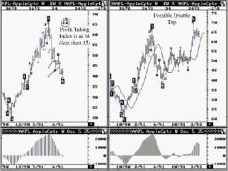 Если Индекс Снятия Прибыли меньше 35, и рынок всё-таки начин ет Фазу Пятой Волны, вероятность возникновения двойной верхушки (Double Top) становится очень высокой.