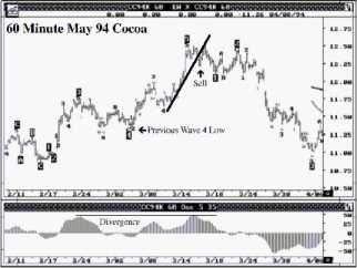 Программное обеспечение представляет завершение последовательности из Пяти Волн цен на Какао в мае 94.