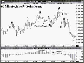 Комбинирование Анализа Волны Эллиота сТрендовыми Каналами РегрессииИюнь 96 Швейцарский Франк (только при активной торговле на товарной бирже). Продажа Первого Типа60-минутный (Почасовой График)