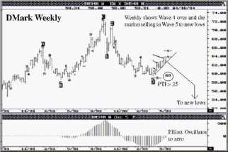 Следующий график демонстрирует то, как DMark от сентября 93 завершает очевидное понижение снятия прибыли Четвёртой Волны.