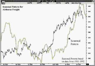 Большинство сырьевых товаров и акций демонстрируют Сезонные Тенденции в движении цен. Например: во время зимних месяцев спрос на мазут достигает пика. В течение летних месяцев цены на зерно, обычно, увеличиваются, основанием для чего служит или отсутствие осадков, или их чрезмерное количество. Цены компаний, производящих игрушки, часто устойчивы в каникулы, и так далее.Добавив на логарифмическую шкалу несколько лет движения цены, вы можете устранить тренды и выделить только Сезонную Тенденцию каждого товара или акции. Данную Сезонную Тенденцию можно применять вместе с анализом Волны Эллиота, что поможет с распределением во времени различных составляющих Расчётов по Волне. Вы также можете применять Сезонную Тенденцию как отдельную систему торговли. Это обсуждается в справочниках GET и на видео – семинарах. В данной книге внимание будет сосредоточено на применении Сезонных Тенденций совместно с анализом Волны Эллиота.