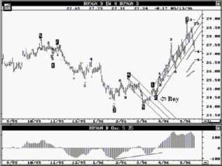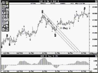Когда Осциллятор Эллиота возвращается к нулю, попытка установления новых максимальных цен в Пятой Волне является, обычно, следующей моделью.Для открытия позиции применяйте Трендовые Каналы Регрессии.Применяйте Трендовые Каналы Регрессии, чтобы защитить порождаемую прибыль. Комбинирование Анализа Волны Эллиота с Трендовыми Каналами РегрессииИюль 96 Соевые Бобы. Покупка Второго и Первого Типа