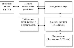 Одной из особенностей системы является то, что в базе данных вы можете хранить не только биржевую информацию, но и свою собственную, например, информацию по бумагам в вашем портфеле блок «Небольшие Базы данных в формате XML». И вы можете проводить какие-то расчетные операции не только между этими данными, но и с биржевыми данными. Ваши собственные данные работают в этой же моделе. Реализован единый подход к данным. Вы можете пользоваться биржевыми данными из внешнего источника, а свои данные хранить у себя на диске, например для поддержания приватности ваших данных. Модель Данных представляет все данные и ваши и внешние в едином виде, в единой форме.