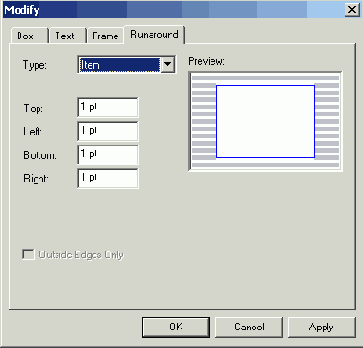 Установите флажок Automatic Text Box (Автоматически создавать текстовый блок) в диалоговом окне New (Создать) (для отображения которого необходимо воспользоваться командой File^New1^Project (Файл^Создать^Проект), а также выберите значение Print (Печатный) из раскрывающегося списка Default Layout (Макет по умолчанию). Если этот флажок установлен, на первой странице нового макета будет присутствовать текстовый блок.