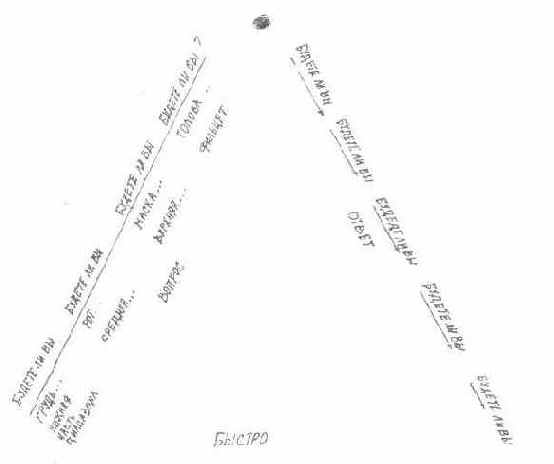 Если Вам для эффекта захочется добавить летящие от волн брызги, Вы можете для этого спровоцировать учащенное дыхание. Внутренний центр — это своего рода электрическая розетка, в которую, как штепсель, вставляется импульс образа. Обратите внимание, что перед Вами основной образец импульсов дыхания-намерения, используемый в речи. По крайней мере, этот образец должен быть использован в случае, когда гарантирована связь намерения-голоса. Каждое изменение мысли влечет за собой изменение дыхания. Если изменения мысли и дыхания происходят одновременно, то голос неизбежно звучит на новой высоте при каждой новой мысли. Когда свобода голоса связана с изменениями в процессе мышления, речь приходит к естественному разнообразию. В этой главной связи — суть всего процесса общения. Дыхание, вовлеченное глубоко вовнутрь, вовлекает актера в самые глубины творческого процесса. Мышление становится органичным, а процесс общения — значительным. Иначе говоря, глубина, в которую текст вовлекает актера, порождается глубиной, в которой дыхание движет телом.