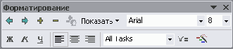 Помимо меню для быстрого доступа к полному списку фильтров можно воспользоваться панелью форматирования (рис. 4.12, файл 5.mpp). Как вы можете заметить, первым пунктом в списке (и на панели, и в меню) идет фильтр All Tasks1 (Все задачи), при использовании которого отображаются все записи таблицы. Этот фильтр включен по умолчанию. (При открытой таблице с информацией о ресурсах фильтр будет называться All Resources (Вce ресурсы)).