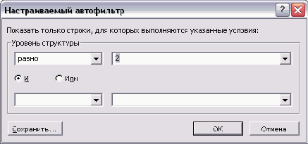 Например, отберем те строки, у которых значение в столбце Outline Level (Уровень структуры) больше или равно 3. Для этого в поле условия выберем соответствующее условие проверки и в поле значения выберем значение 3, оставшееся от предыдущего условия фильтрации. Для проведения фильтрации нажмем кнопку ОК.