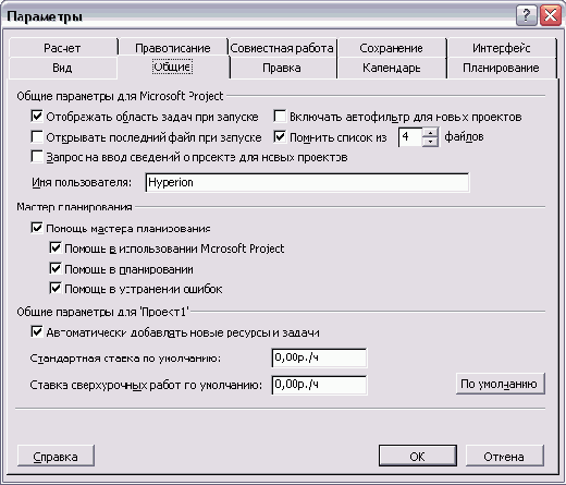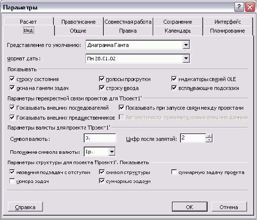 Диалоговое окно определения общих параметров диаграммы Ганта
