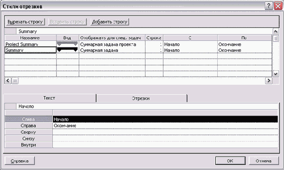 Редактирование стиля Summary (Суммарная задача). Для удобства мы удалили все ненужные стили, и на диаграмме будут отображаться только отрезки этих типов