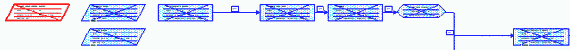 Схема данных MS Project: в центре расположена текущая задача, выделенная цветом, слева — предшествующая задача, а справа — последующие