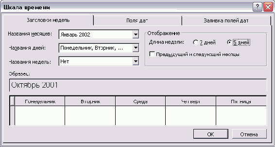 Редактирование шаблона осуществляется путем выбора шаблона из списка и нажатием кнопки Edit (Изменить). После этого открывается диалоговое окно определения свойств, в котором можно изменять текущие настройки выбранного шаблона. Для удаления шаблона нужно выбрать его и нажать кнопку Delete (Удалить). MS Project запрещает редактирование и удаление шаблона Standard (Стандартный).