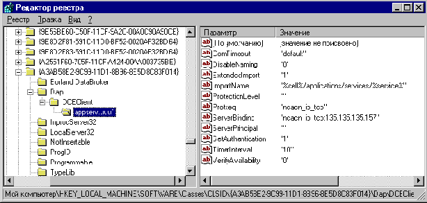 Рис.6 Раздел Dap\DCEClient\ реестра клиента при импорте объекта
