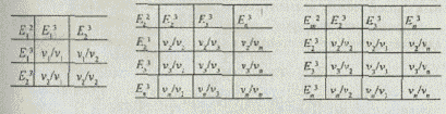 Указанные функции в общем случае могут быть реализованы на основе трех или двух альтернативных элементов или же на основе одного элемента (табл. 5.21). Далее генерируются все возможные сочетания функций и для каждого сочетания подбираются альтернативы, которые сводятся в матрицу (табл. 5.22). Верхние индексы в матрице соответствуют порядковому номеру альтернативы, а нижние — номерам функций, которые реализуются альтернативами.