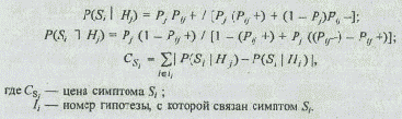 Симптом с максимальной ценой в наибольшей мере изменяет априорные вероятности гипотез при подтверждении или отрицании этого симптома. Цены симптомов вычисляются для определения очередного симптома, относительно которого следует задать очередной вопрос пользователю.