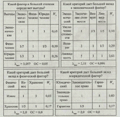 Альтернативы морфологической таблицы оцениваются экспертом попарно или относительно стандартов. На основании экспертных данных по каждой обобщенной функциональной подсистеме вычисляется вектор приоритетов альтернатив по отдельным критериям качества.