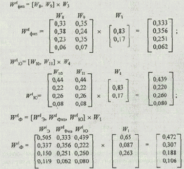 bijk — относительные оценки эффективности, относящиеся к альтернативам, входящим в композицию, представляющую конкурирующую систему.