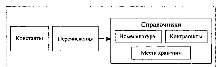 Кроме этого, некоторые объекты метаданных также могут образовывать типы значений. Например, константе «Руководитель» может быть назначен тип «Справочник.Сотрудники». В этом случае значение константы будет представлять собой ссылку на один из элементов указанного справочника.