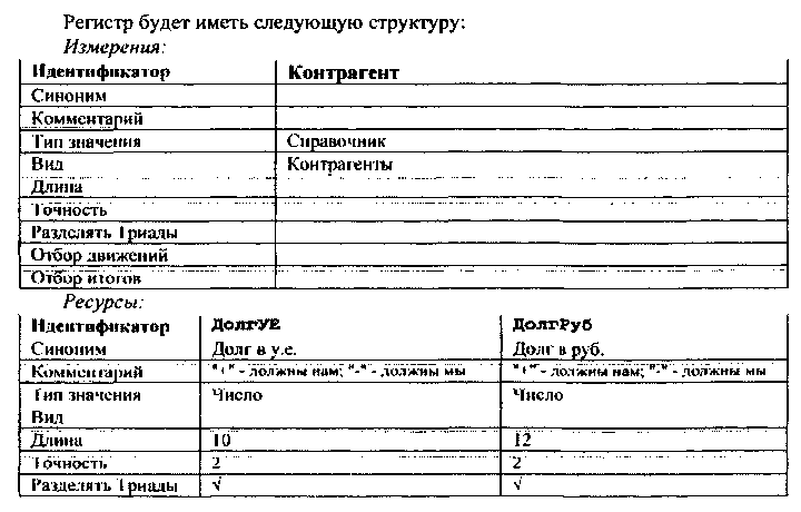 Физический аналог регистра подобрать сложно. Можно сказать, что это N-мерная система координат, в узлах которой хранятся итоговые данные на определенный момент времени, причем доступ к данным осуществляется практически мгновенно. Основными элементами регистра являются измерения (оси координат, на пересечении конкретных значений которых лежит информация) и ресурсы (собственно информация в виде итоговых, данных). Измерения можно определить как набор признаков, в разрезе которых информация должна храниться, извлекаться, анализироваться. Ресурсы - категории учета, которые должны быть представлены в числовом виде.