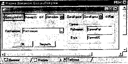 Модуль формы может содержать такие алгоритмы как: построение печатной формы, обработка вводимой в диалог информации для целей входного контроля, выполнение расчетов и т.д.