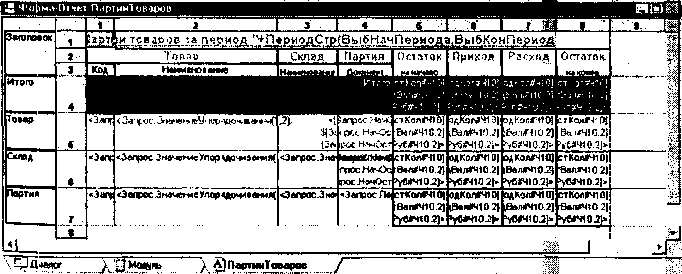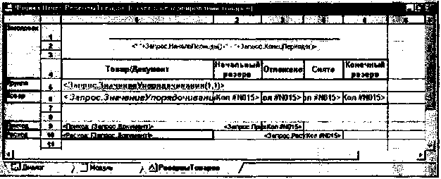 Эти значения были сохранены отчетом «ОстаткиТоваров» в содержимое поля «Расшифровка» свойств соответствующей ячейки отчета (см. 6.7).