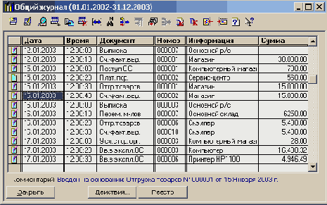 Журнал операций содержит основные сведения об операциях.