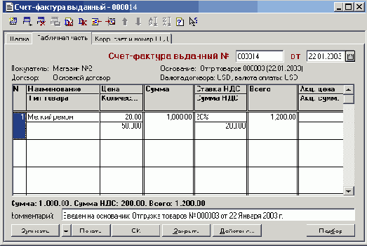 «Счет-фактура выданный», «Запись книги продаж»