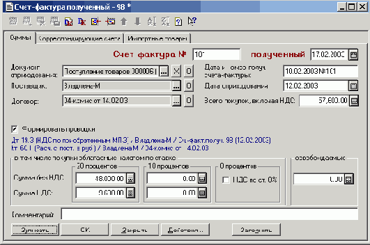 «Счет-фактура полученный», «Запись книги покупок»