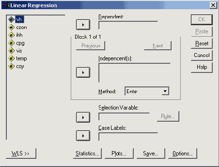 Рис.16.2: Диалоговое окно Линейная регрессия