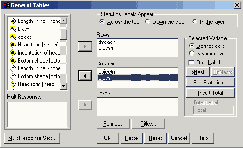 Выберите в меню опции Analyze (Анализ) Custom Tables (Пользовательские таблицы) Tables of Frequencies... (Таблицы частот)