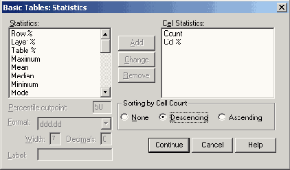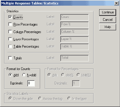 В диалоговом окне Tables of Frequencies: Statistics (Таблицы частот: Статистики) Вы можете активировать и другие форматы отображения количества и процентов.
