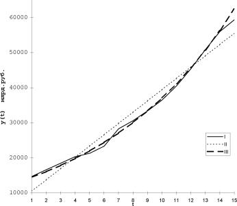 Прологарифмировав выражение (3.10.), получим параболу log yt = log a+t log b+t2log c