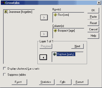 Выберите в меню команды Analyze (Анализ) Descriptive Statistics (Дескриптивные статистики) Crosstabs... (Таблицы сопряженности)