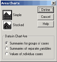 В диалоговом окне Pareto Charts (Диаграммы Парето) щёлкните на области Simple (Простая) и оставьте опцию Counts or sums for groups of cases (Частоты или суммы категорий одной переменной), установленную по умолчанию,.