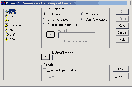 В поле Category Axis: (Ось категорий) введите переменную zweck. В группе Bars Represent (Значения столбцов) поставьте маркер рядом с опцией варианта выбора Sums of variable: (Суммы переменных) и переведите переменную dm в появившееся поле. Отображение совокупной (кумулятивной) кривой устанавливается по умолчанию.