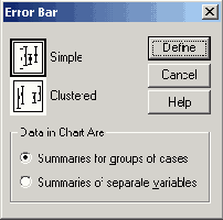 В диалоговом окне Error Bar (Столбики ошибок) вновь щёлкните на области Simple (Простая), но теперь поставьте маркер возле опции Summaries of separate variables (Обработка отдельных переменных).