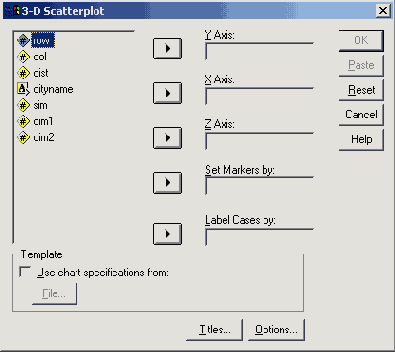 И здесь Вы бы могли отметить маркировкой значения одной из переменных, а также указать наименования наблюдений и при помощи выключателя Titles... (Заголовок) дать диаграмме подходящее название.