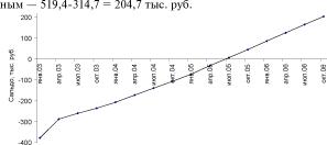 Максимальный дефицит по проекту составил 1174 млн руб. При этом на 290 млн руб. дефицит финансируется за счет обычной текущей деятельности ОАО ВгТЗ. Тогда чистая потребность в финансировании проекта составит 884 млн руб.