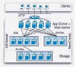 Потенциальным узким местом классической архитектуры является сервер баз данных. Если сервер баз данных становится перегруженным, единственным выходом из положения является покупка более мощной машины. Машины, используемые для поддержки серверов баз данных, обычно стоят недешево, поскольку они должны уметь справляться с пиковой рабочей нагрузкой. Поэтому классической архитектуре с рис. 1 свойственны ограничения по отношению и к масштабируемости, и к стоимости – двум важным целям "облачных" вычислений. В следующих подразделах этого раздела рассматриваются архитектуры, выбираемыми разработчиками "облачных" служб для преодоления этих ограничений на уровне сервера баз данных.
