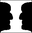Следующее - это понятие фигуры и фона. Фигура - это то, что выделено вниманием и собрано мозгом. Фон - все остальное вокруг. Для объяснения - следующая картинка. На ней можно видеть либо белую вазу, либо два чёрных профиля. Если вы видите вазу - она становится фигурой, если профили - наоборот. Одновременно вы можете видеть только что-то одно.