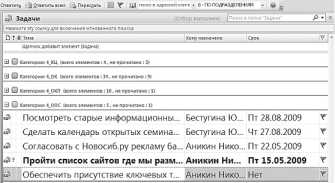 С помощью экспорта задач в Microsoft Outlook я назначил все поручения ответственным исполнителям в нашей корпоративной системе контроля поручений. В специально настроенном пользовательском представлении "Выставка" все задачи по проекту отобразились в едином списке.